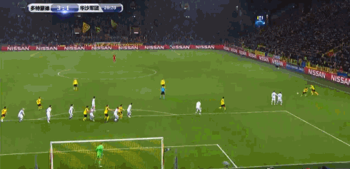第20分钟,多特任意球由罗伊斯开出,门前希尔兹尼亚克跃起双拳将球击出,但皮球打在跟进抢点的沙欣身上弹入球网,3-1!