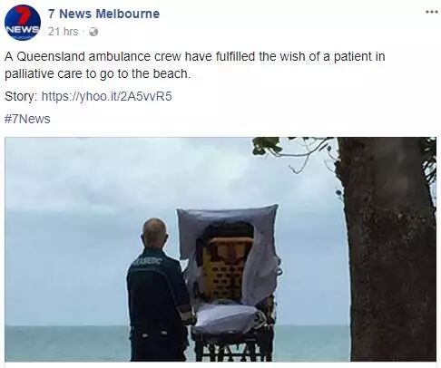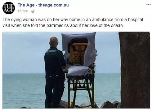 到达目的地,Graeme和同事Danielle,推着病床载着老人,来到了海边,