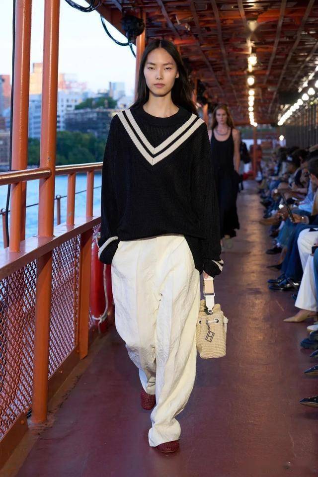 除了小格纹衬衫,来自东海岸的学院派V领毛衣也不妨作为今冬的搭配灵感,这种醒目又显瘦的常春藤气息,随便搭配一条白裤子就很有腔调。