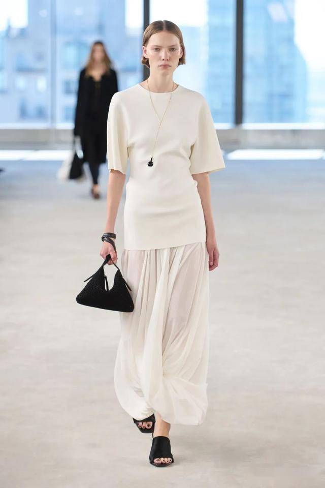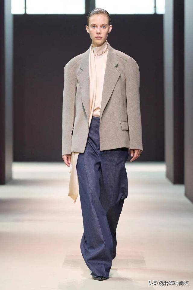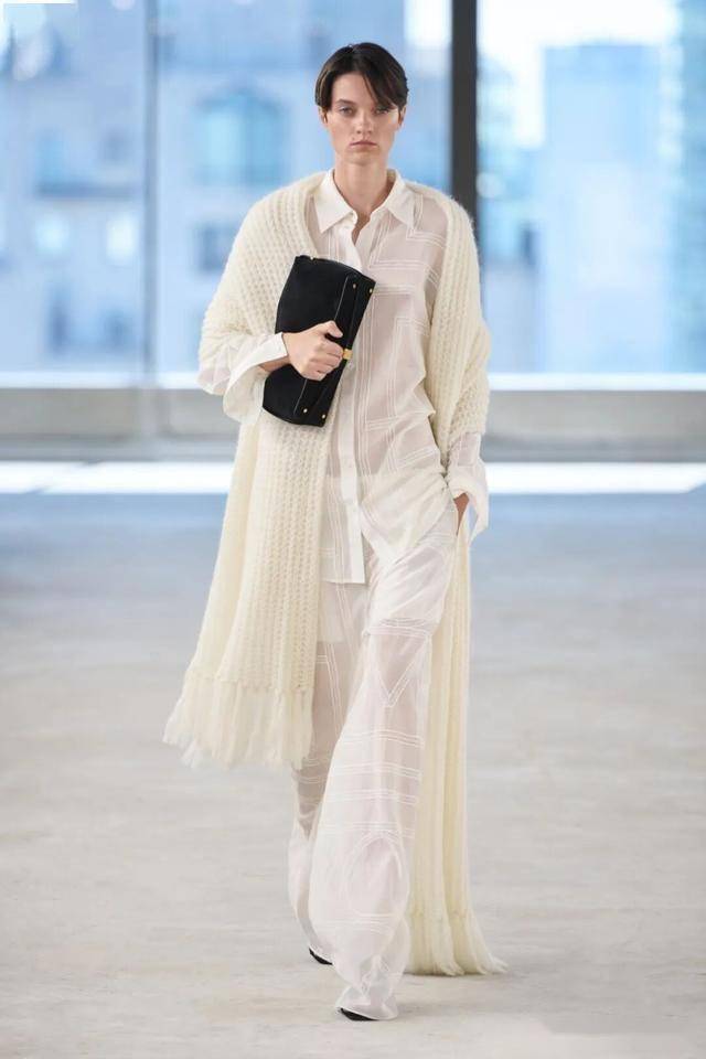 Brioni的淡人感穿搭并不是一味的克制,而是融合了女性对于慵懒松弛的追求,所以在大极简版型的基础上,又有一些飘逸流畅的流动感。