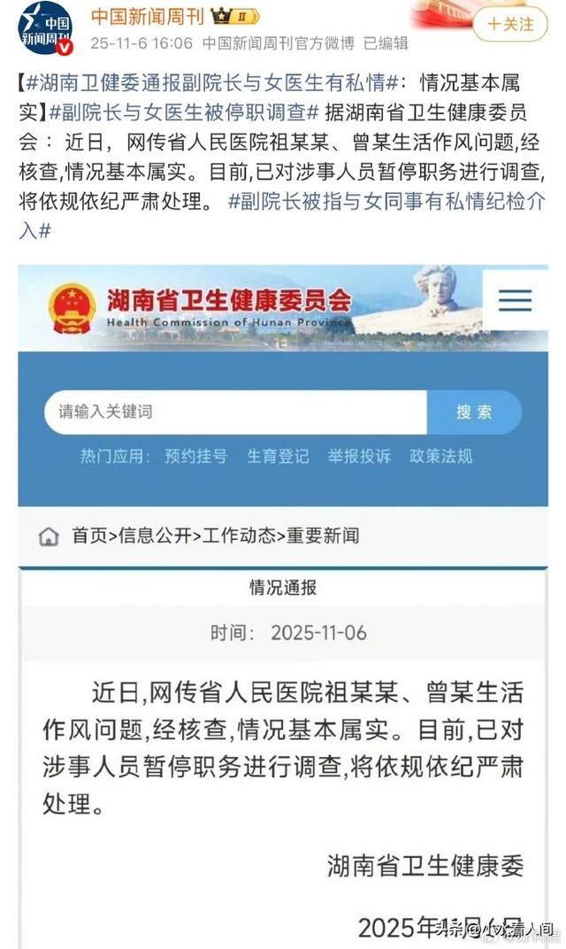 湖南副院长出轨眼科主任,不雅视频曝光,医院通报,两人彻底社死