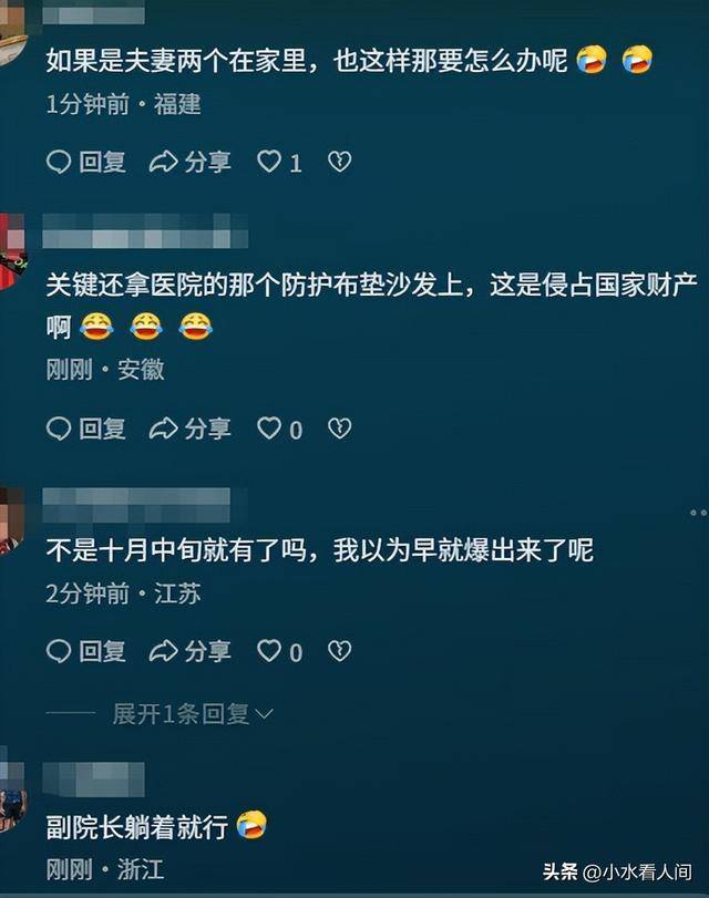 而且事件发生在医院值班室,两人还在沙发上垫了医院手术使用的蓝色无菌手术垫。