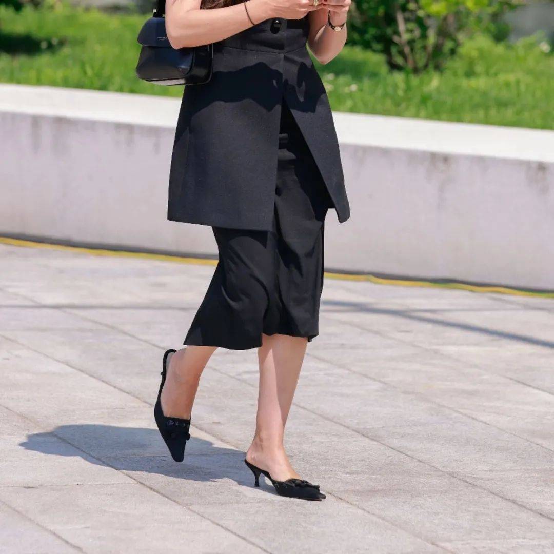 加上尖头设计为整体线条带来延伸感,也让步伐更具气场。若搭配微跟设计,更可释放都市女性那种“温柔而坚定”的气质。