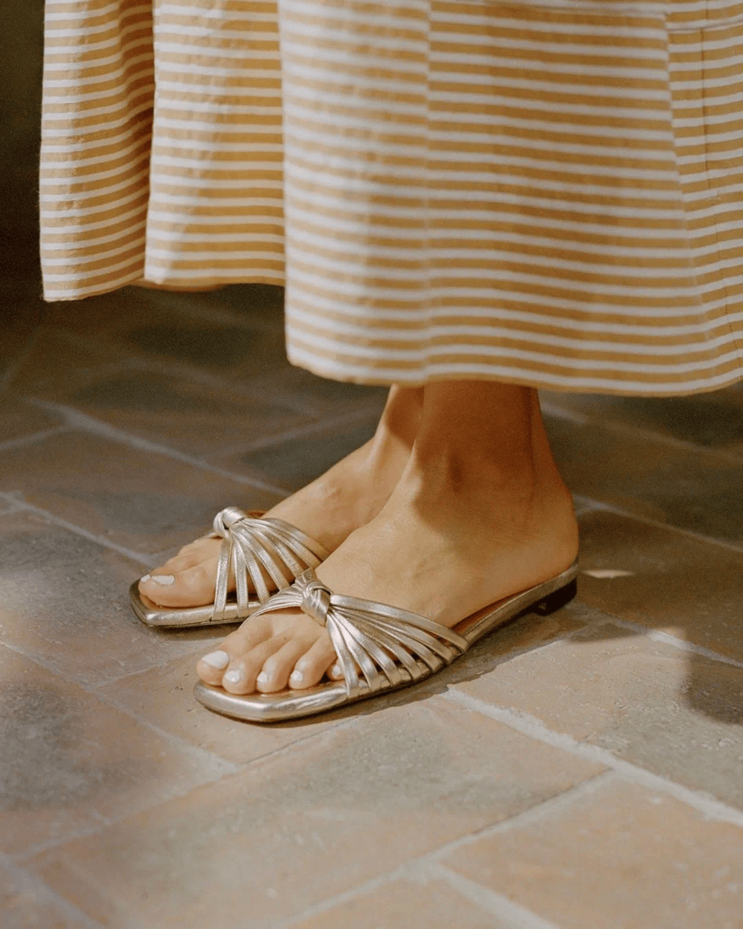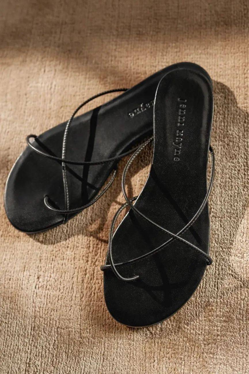 哑光皮质简洁率性,麻编或藤编自带自然随性,光泽皮则多了些法式感的慵懒优雅。还有“跟脚”的脚拇指穿环款式。