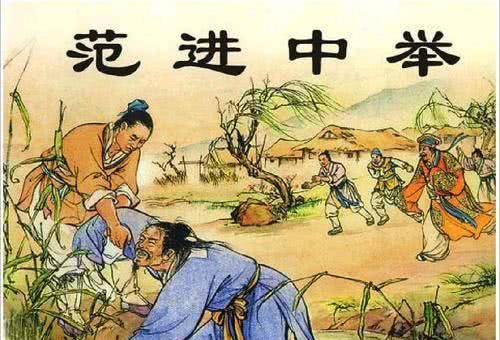 中学课文《范进中举》里的范进,是清人吴敬梓笔下《儒林外史》中的一个角色,范进穷困潦倒,在一直不停地应试中度过了他的前半生,考了二十多次,直到五十四岁才中了个秀才,有了乡试的资格,没想到乡试居然一试即中,成了举人。中举后他竟然高兴得“疯”掉了,亏得平日里颇瞧他不起的老丈人胡屠户扇了他一巴掌,才将他打得恢复正常。