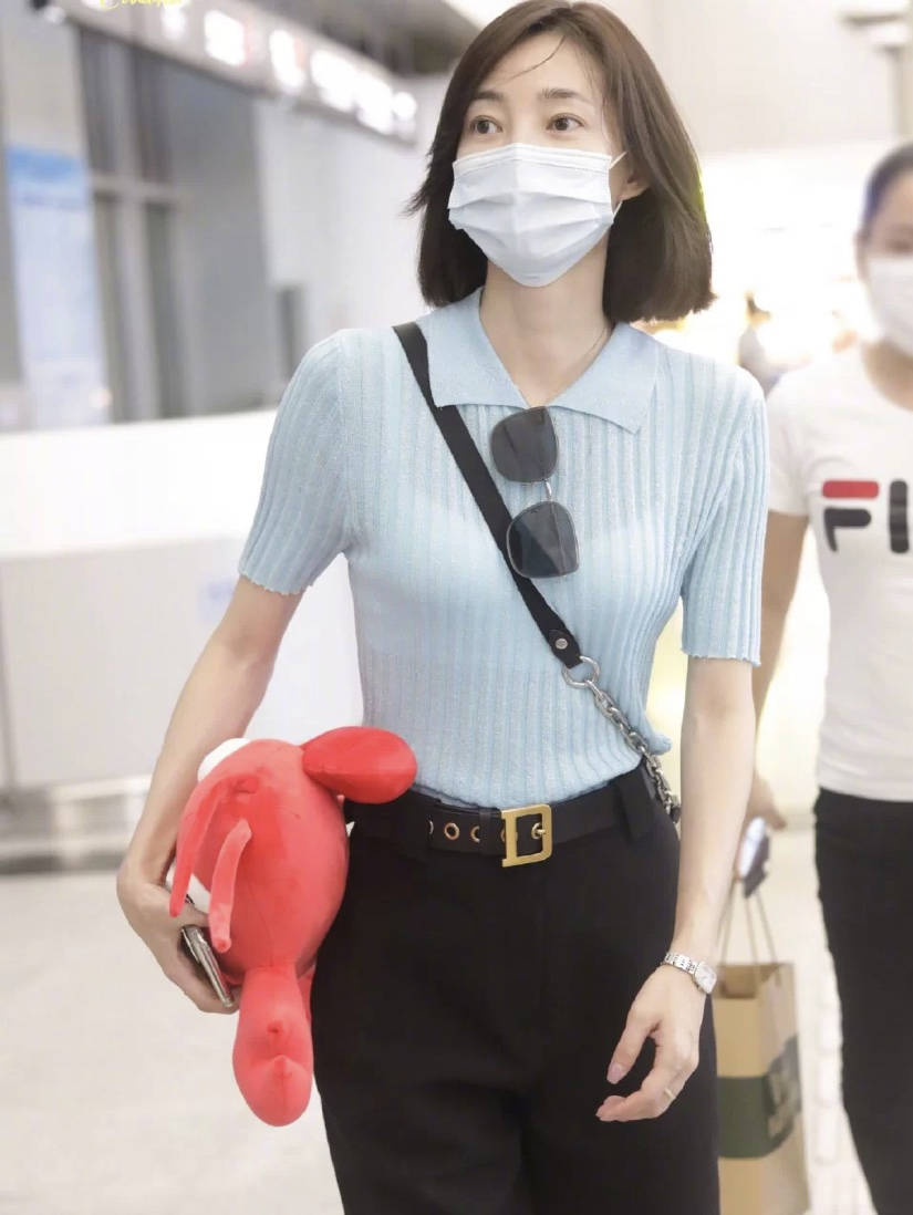 中年女人穿POLO衫,为了让造型看起来更加干练利落,尽量采用“塞衣角”穿法,同时也可以强调腰线,划分身材比例。但需要注意的是,不能塞得太过刻意明显,可以将衣服下摆塞进去后再扯出来一点,适当修饰腰腹赘肉,搭配阔腿裤纵向拉伸视觉比例,从而营造出显高但也不暴露身材缺点的效果。