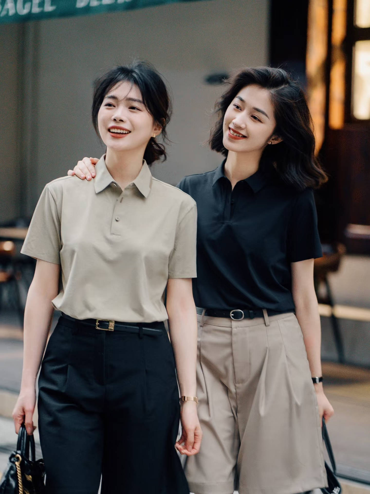 中年女人挑选POLO衫,版型一定不能太松或太紧,以合身为主,肩部、腰腹位置刚好贴合,这样才能穿出笔挺、立体的效果,也不会给人一种大妈衫的感觉。
