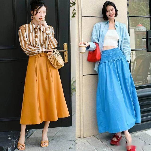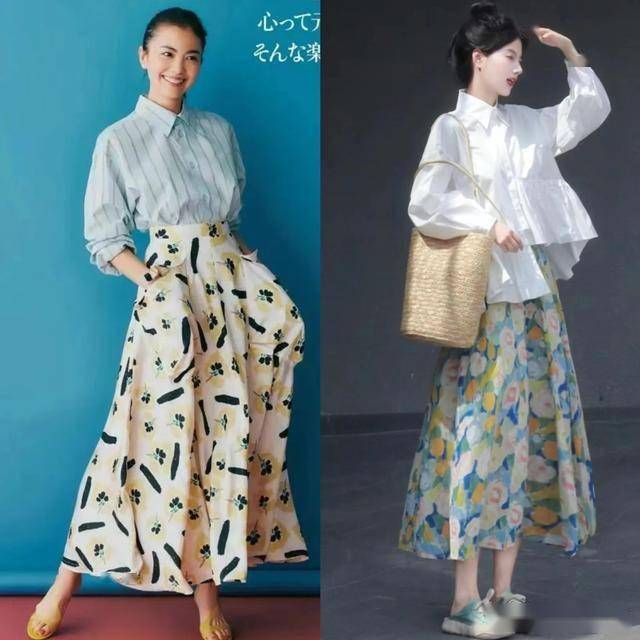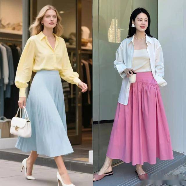 衬衫+赫本裙 衬衫是初夏很实穿的单品了,简洁利落中透着知性的魅力,很适合上班族,可以搭配一条温柔的赫本长裙,更增加了精致女人味。 鹅黄色的衬衫搭配水蓝色百褶赫本裙,轻盈感十足,同时温柔的配色显得明媚,很有初夏的味道。
