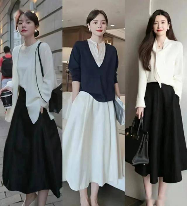 初夏的衣橱里可以有一条黑色或是白色的赫本裙,它可以搭遍你所有颜色的针织衫,都优雅高级。 米白色的飘带领针织衫,温柔妩媚中带着些飘逸感,搭配黑色赫本裙,简洁高级又低调,适合正式一些的场合。