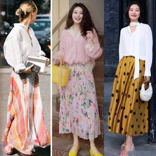 针织衫+赫本裙 针织衫是温和而精致的,赫本裙是端庄的,它们配在一起,便有一种柔软可亲的风情,特别适合成熟一些的女生。 白色针织衫搭配日光黄色的赫本长裙,长裙自腰际垂下,在脚踝处收住,既不张扬又带着些浪漫轻盈的格调,配色也温暖可爱,这样走在初夏的微风里,自有一种不疾不徐的优雅与浪漫。