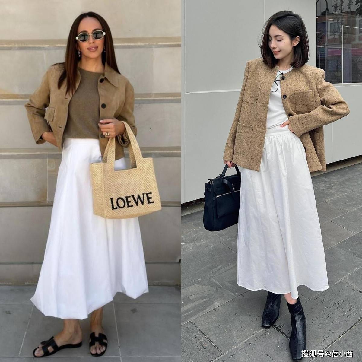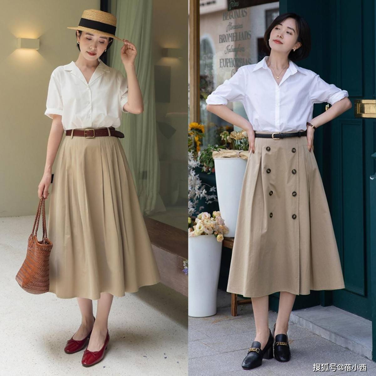 卡其色半身裙更是宛如春日里的一首抒情诗,充满了温柔与浪漫的气息,而且不同的裙型有着不同的风格特点,能满足40+女性多样化的穿搭需求。