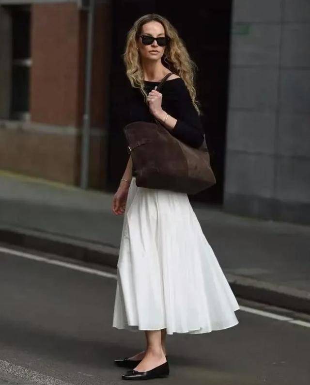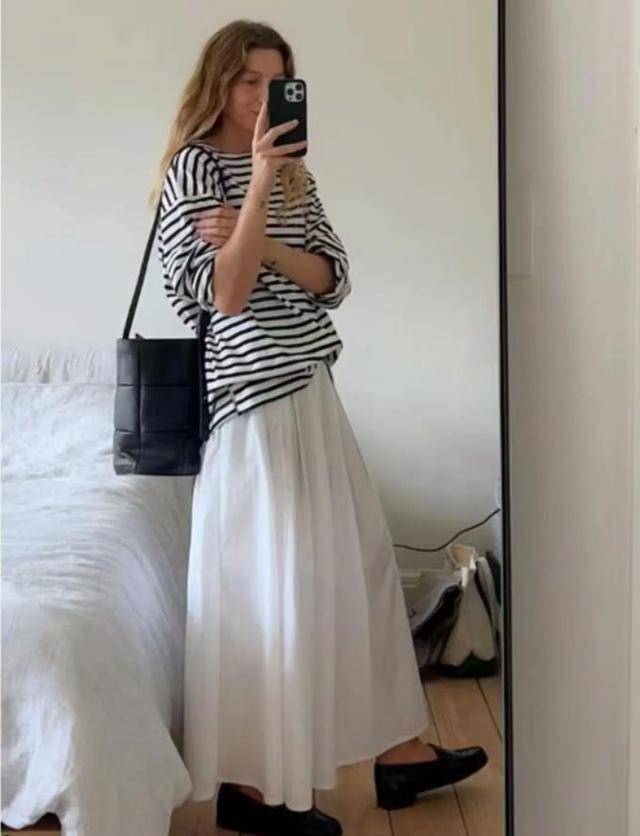 带点慵懒味道的白色长裙,穿起来不仅舒适还带点几分优雅清新,而且这种款式真的很适合春天,上衣配法式条纹衫,或者是卫衣、针织衫都好看,整个着装亮眼却不夸张,尽显“小仙女”的气息。