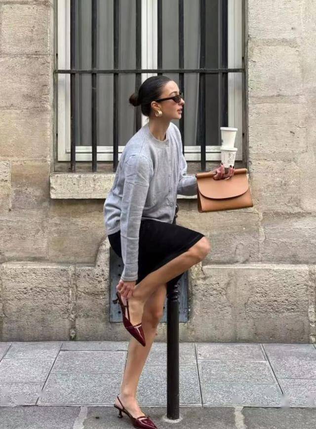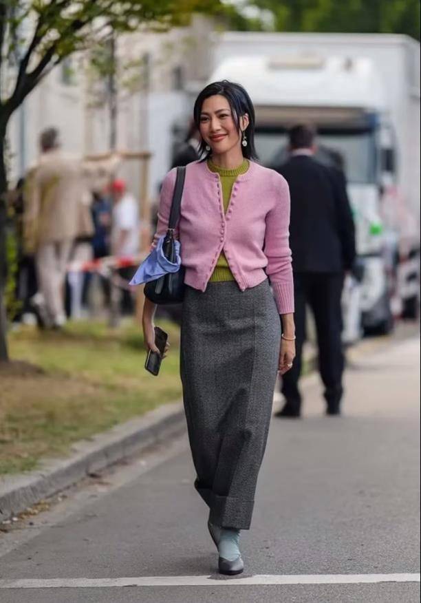 我觉得针织开衫是春天永不过时的单品了,它既经典又时髦百搭,在穿搭上无需花太多心思,也不需要太复杂,选择基础款的灰色或黑色针织开衫,配同色系半裙,轻轻松松就能穿出复古优雅。