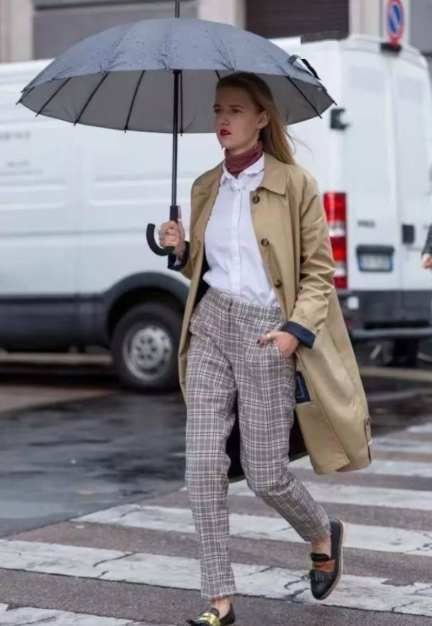 虽然是春天,但还是有些寒意的,所以你可以外加一件风衣或是针织开衫叠穿。