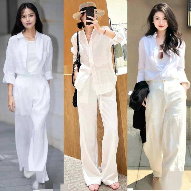 如果要出席正式的场合,想要穿出高调的贵气,那不妨选择白衬衫搭配白色阔腿裤,单一配色不仅显瘦显高,而且高级感拉满。