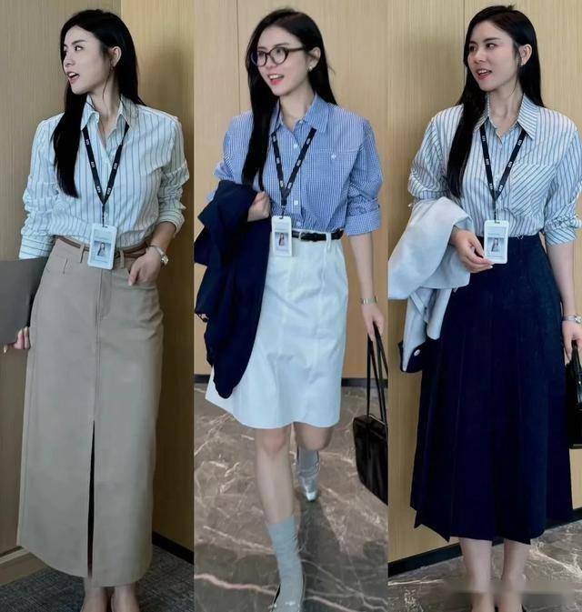 对于职场女生来说,我们要穿出职场的严谨与知性,又要穿得体面时髦,还要有一点点优雅的女人味,那不妨选择衬衫与长款半裙的搭配。