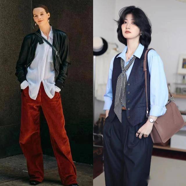 衬衫与阔腿裤的搭配很经典,既有衬衫的干练,又有着阔腿裤的洒脱帅气,仿佛每一步都带风,展现出大女人的风格感。