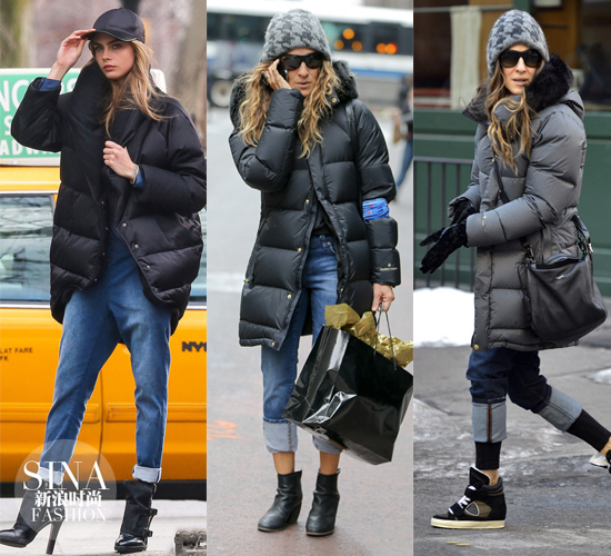 明星长款棉服的错误示范