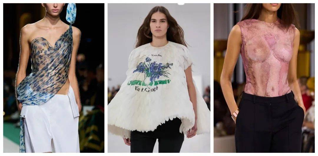 维多利亚·贝克汉姆(Victoria Beckham) 的系列以类似失重面料的衬衫为特色,风可以让风留在模特身上,还有那些看起来像“流动”的衬衫。这一切都归功于英国设计师的轻薄材料、复杂的窗帘和极其感性的视觉。欧普艺术错觉是乔纳森·安德森(Jonathan Anderson) 的专长,他为Loewe 设计了带有文森特·梵高(Vincent Van Gogh) 画作图案的羽毛衬衫。反过来,巴尔曼(Balmain) 衬衫模仿女性身体的形状。