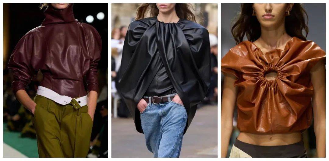 继皮裙、裤子和外套的大流行之后,现在是皮革衬衫的时代,这将是2025 年春夏最大胆的元素之一。最漂亮的款式之一可以在Stella McCartney 系列中找到:垂坠剪裁打造出垂落在肩上的斗篷,非常适合搭配牛仔裤和优雅的长裙。维多利亚·贝克汉姆(Victoria Beckham) 推出了一款具有明显腰线、宽肩和立领的衬衫。Bottega Veneta 的春夏系列中也可以找到经典的皮革衬衫。
