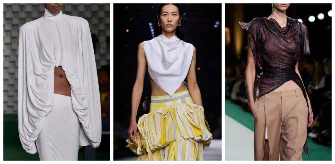 2025 年春夏最精致的趋势之一是垂褶衬衫。受希腊女神风格启发的流动风格以现代版本出现在许多设计师的系列中。Bottega Veneta 推出了一款无袖衬衫,看起来就像一条围巾披在裸体上。在Ester Manas 系列中,精美的薄纱垂褶打造出性感的褶边;在Stella McCartney 中,它们优雅地包裹着廓形;而Luis de Javier 则打造了下一季最美丽的垂褶衬衫之一,它像翅膀一样错综复杂地拥抱着身材。