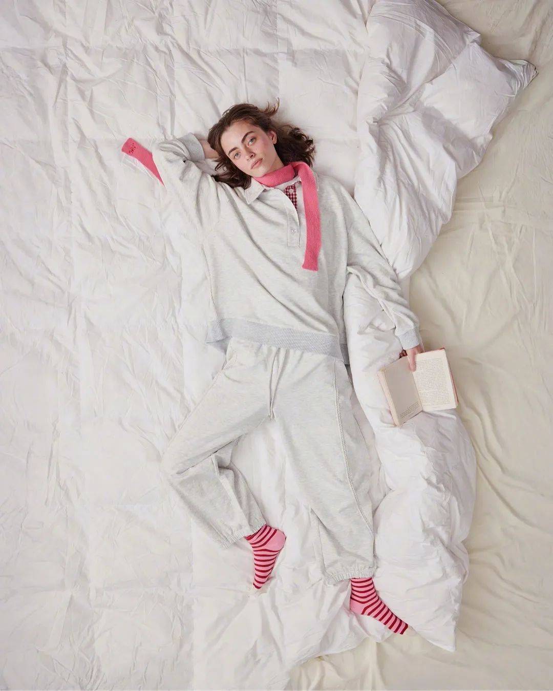 首选廓形宽松、面料亲人、款式简单的衣服,比如羊绒毛衣、针织开衫、卫裤等。 确保衣服有一定的舒适度和服帖度,自己能够活动自如。