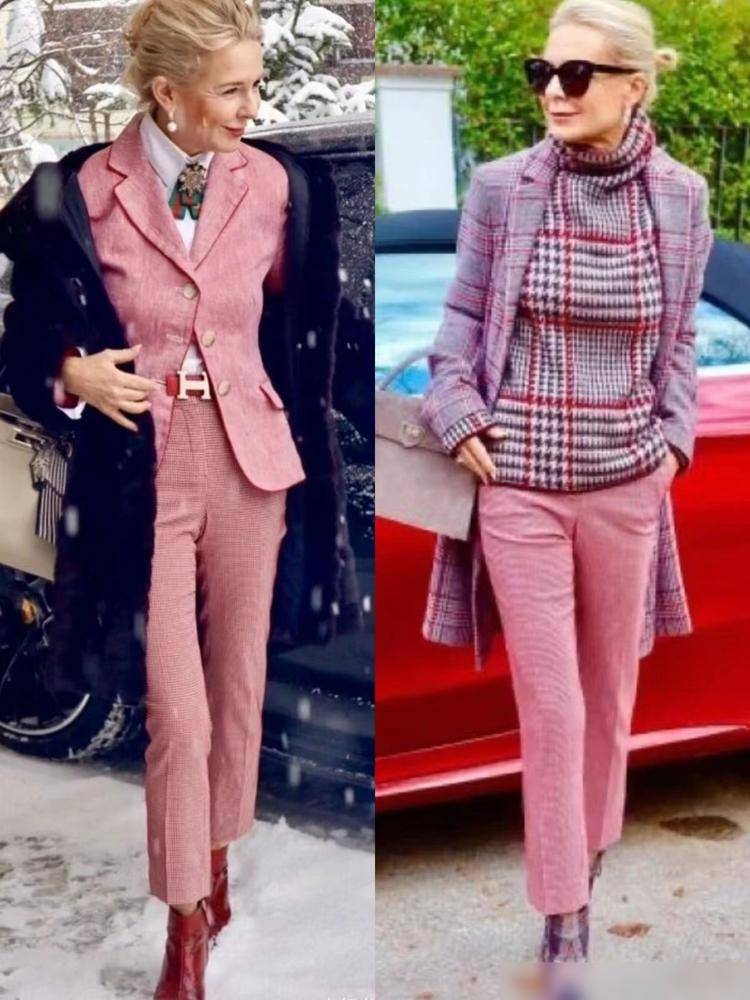 巴黎的奶奶们热衷于九分裤搭配短筒靴,短靴能够有效地展现出脚踝的纤细, 并与九分裤形成完美的长度对比。这种搭配不仅增加了层次感,还能够显著地提升腿部线条的比例,打造出一种既优雅又时尚的风格。