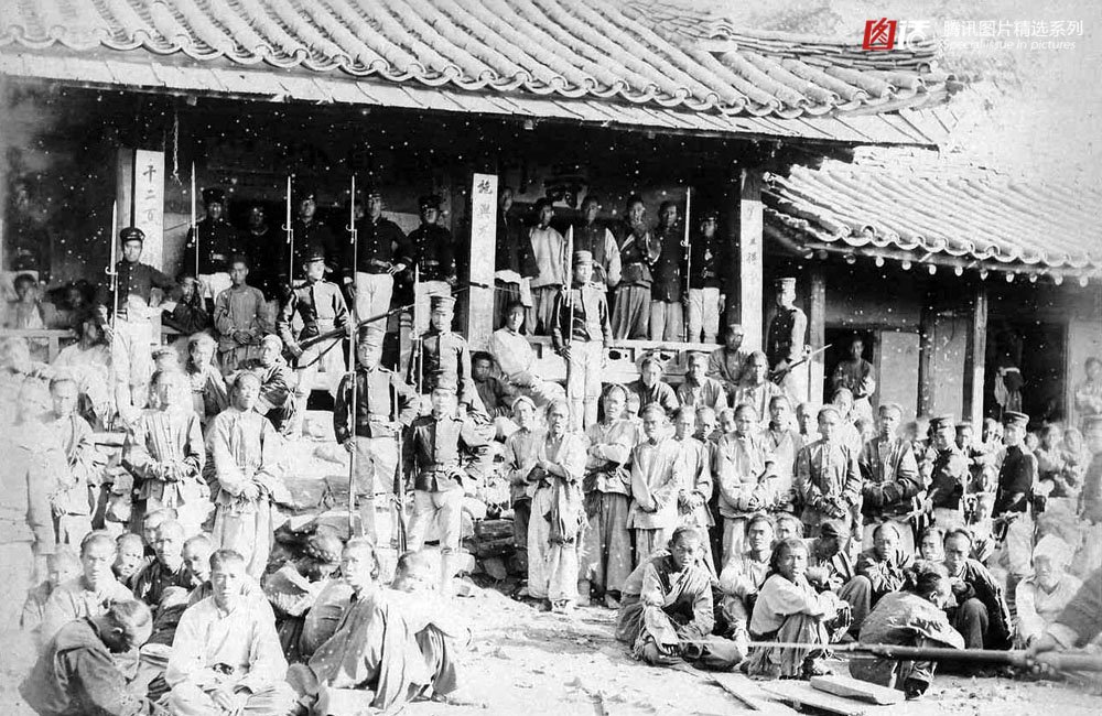 7月28日,日本陆军袭击驻牙山清军,清军迅速败退。败将叶志超却谎报称战胜,受到蒙在鼓里的清政府嘉奖。随后,汉城、平壤相继失守。图为日军占领平壤后捕获的清军战俘。​