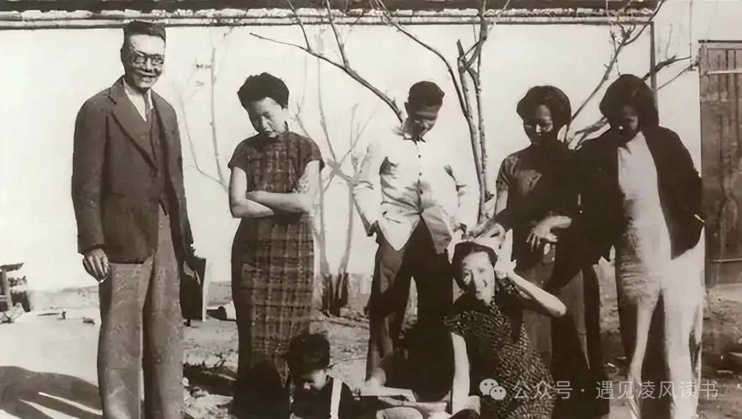 林徽因穿着旗袍站在人群中,身后的金岳霖依旧选了个不抢眼的位置,却笑得比谁都开心