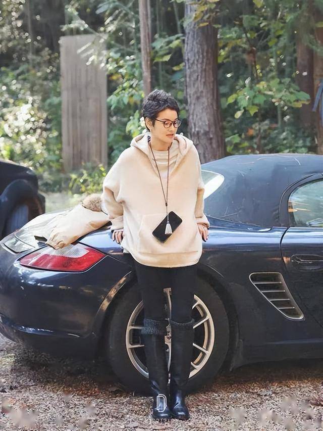 高领款式的灰色羊绒毛衣,版型上稍微宽松一点,穿在身上没有紧绷感,所以对于身材的包容性也很高,搭配黑色阔腿裤,将多余的裤腿塞进短靴中,低调中又不失利落感。