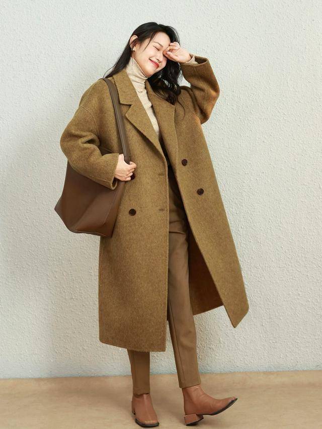 冬季穿衣要保暖时髦一把抓,选择一件羊绒材质的大衣,叠穿羊绒高领打底衫,用基础色和彩色的配色公式,组合出更加高级耐看的造型,安静中透露着一丝高级感。