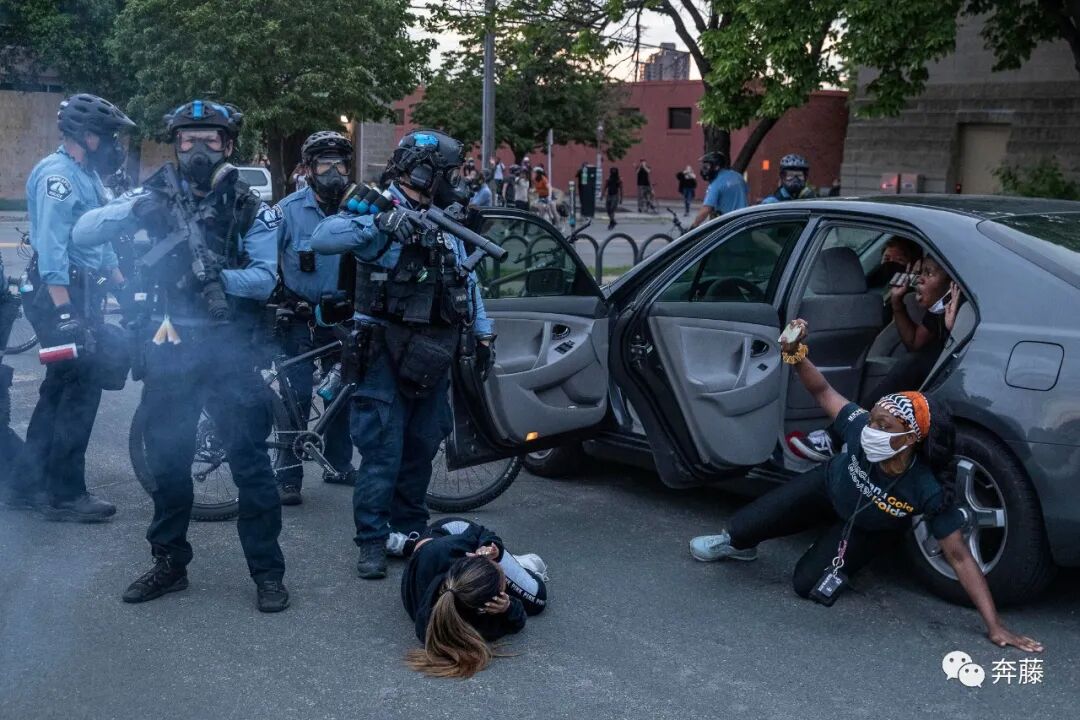 5月31日,明尼阿波利斯(Minneapolis),乔治·弗洛伊德(George Floyd)被杀后将近一周,军官与抗议者发生抵触。明尼苏达州州长蒂姆·沃尔兹(Tim Walz)启动了国民警卫队,以帮助警察在街上巡逻。