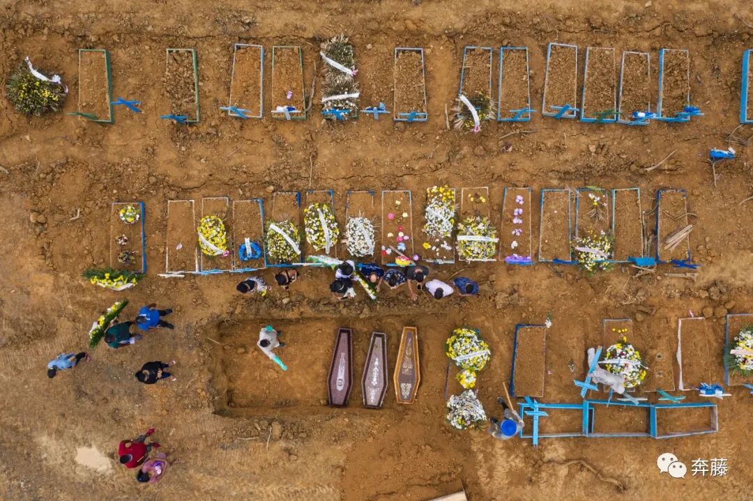 5月25日,巴西马瑙斯,巴西亚马逊最大的城市马瑙斯的一处墓地里,一排排新挖的坟墓,那里每个Covid-19病房都挤满了人,每天有100多人死亡。