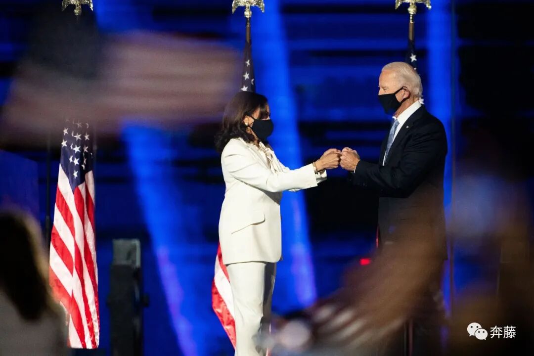 11月7日,特拉华州威尔明顿,拜登和卡马拉·哈里斯作为当选总统和副总统发表讲话。 宾夕法尼亚州给了拜登必要的选举团票锁定胜局。