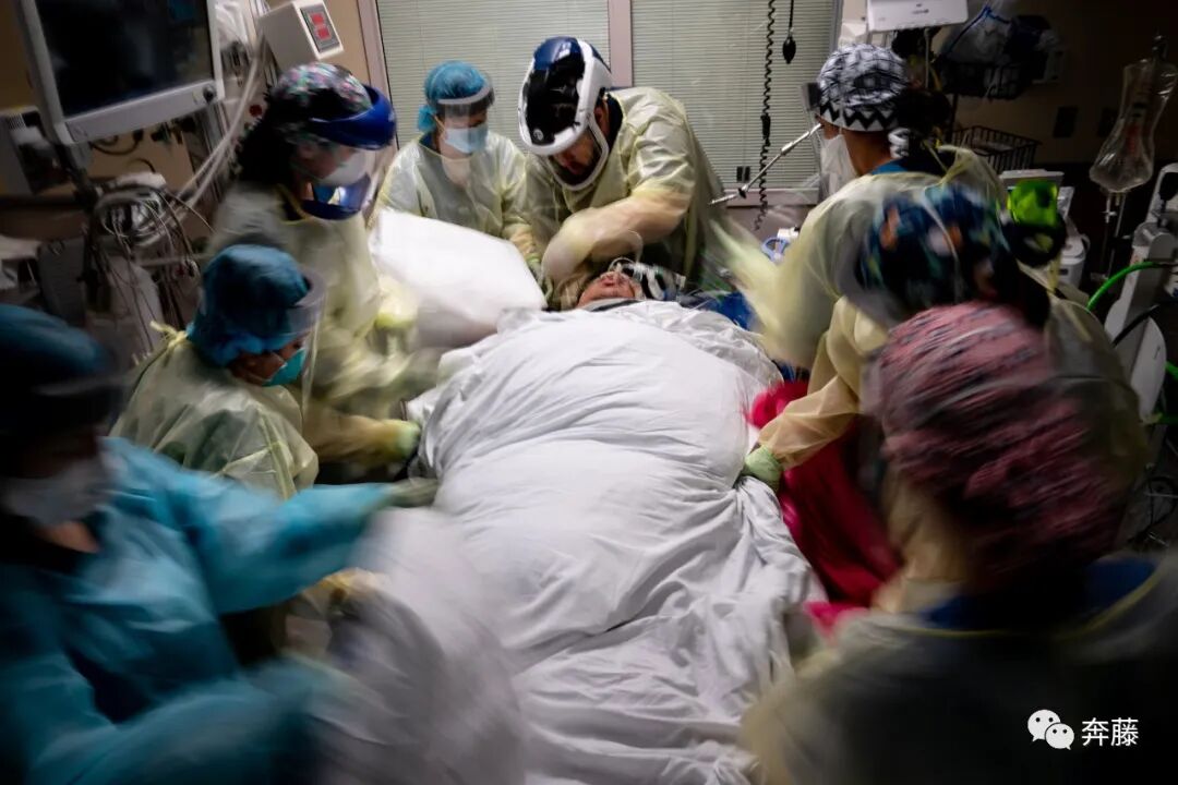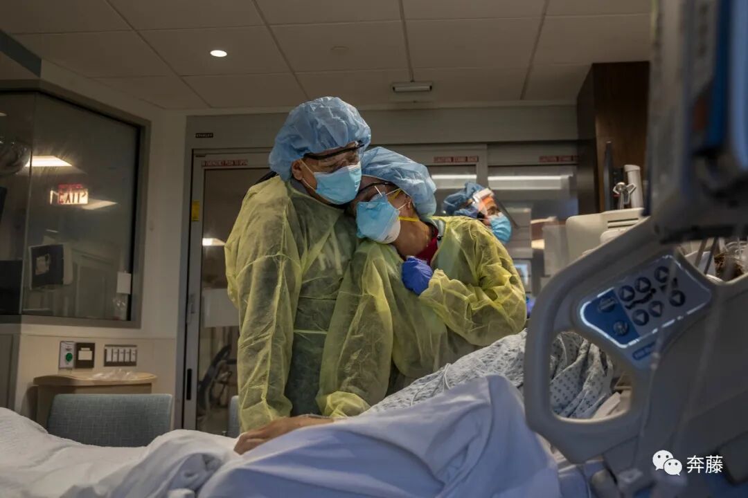 11月26日,休斯顿一名医生在重症监护室安慰一名Covid-19病人。美国确诊的冠状病毒病例和相关死亡人数远远超过任何其他国家。
