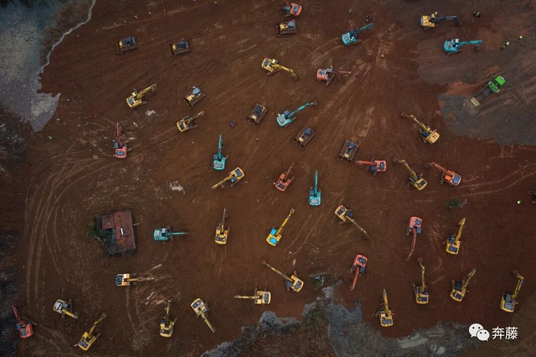1月24日,中国武汉,施工队全天候在野战医院里工作,以应对新型冠状病毒的爆发,野战医院大多数在10天内建成。