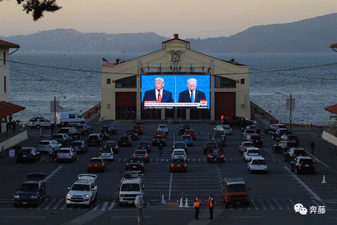 10月22日,旧金山,总统最后辩论的驾车观看派对。