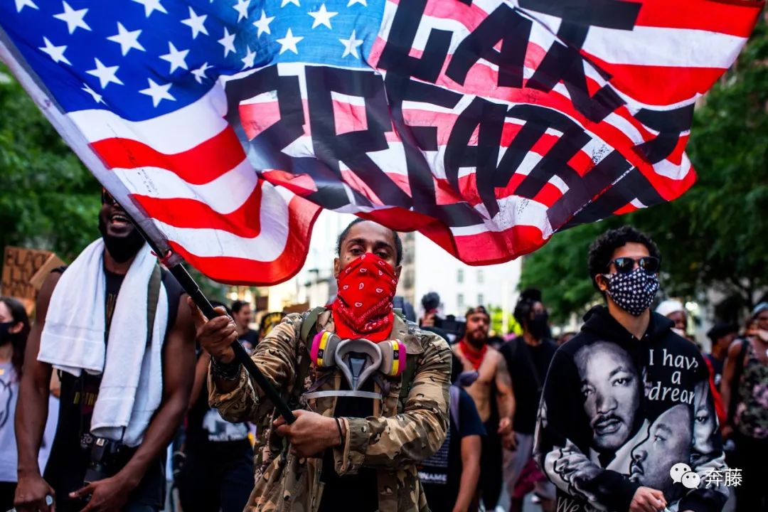 6月4日,纽约,抗议者在曼哈顿游行,全国各地因在明尼阿波利斯市乔治·弗洛伊德(George Floyd)被杀而愤怒的民众。
