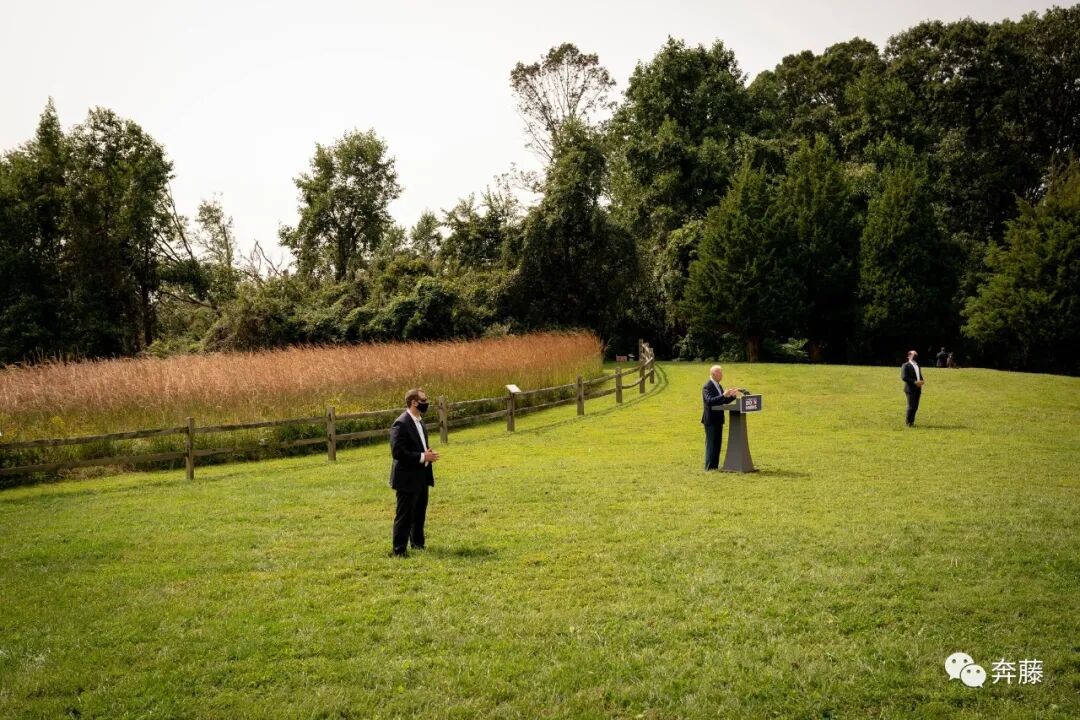 9月14日,特拉华州威尔明顿市,民主党总统候选人约瑟夫·拜登(Joseph R. Biden Jr.)在特拉华州自然历史博物馆的保持社交距离的竞选活动中演讲。