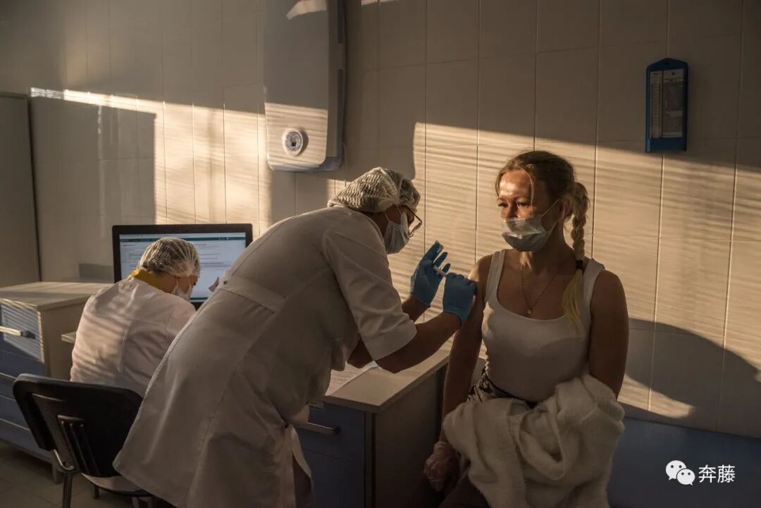 12月7日,莫斯科,一名医务人员在诊所为患者(也是医生)接种了俄罗斯的冠状病毒疫苗。疫苗的最终试验尚未完成。