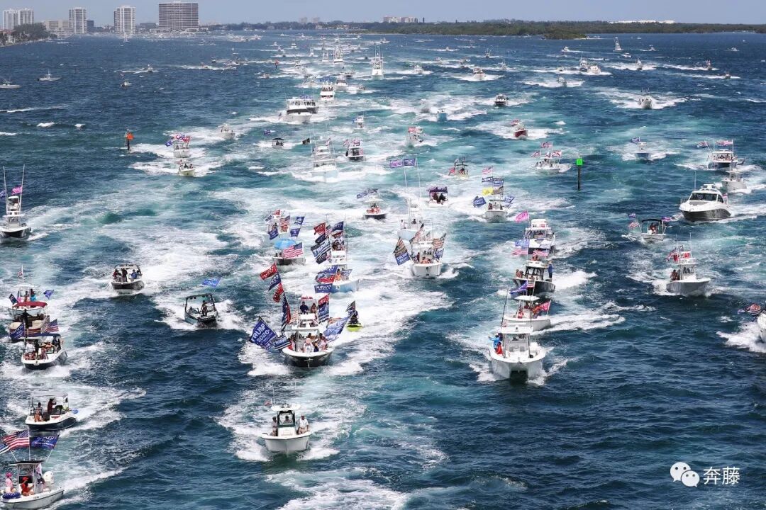 9月7日,佛罗里达州西棕榈滩。特朗普总统的支持者参加了沿内陆水路的游船游行。该游行从Jupiter开始,一直到总统的马尔拉古庄园附近。