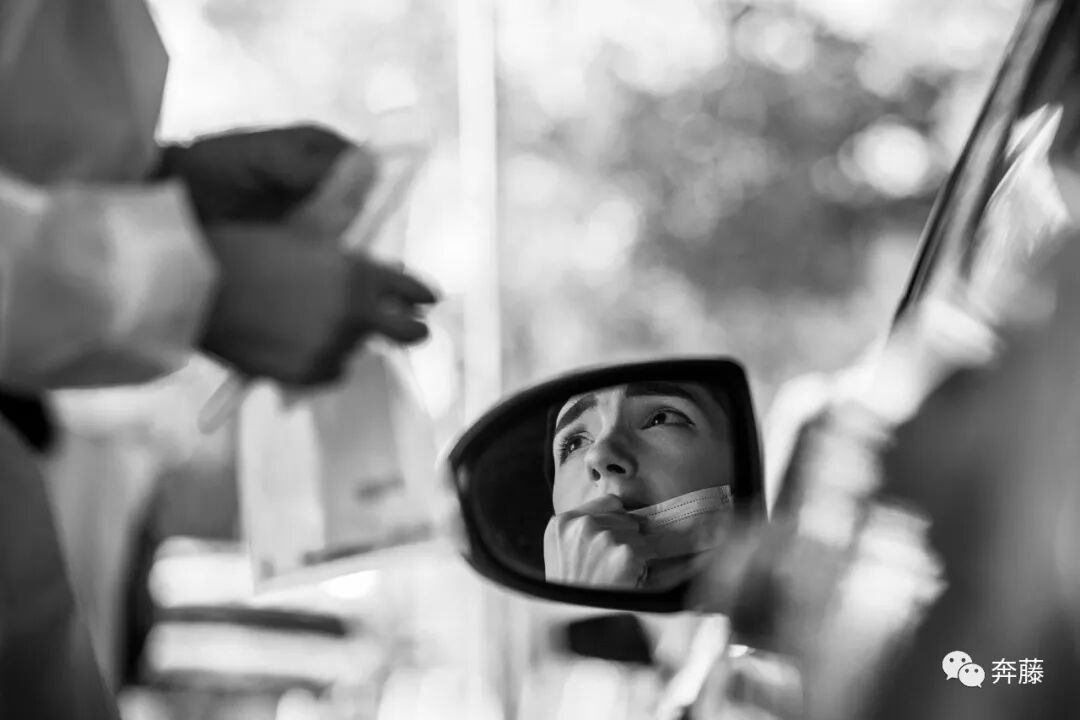 10月14日,佛罗里达州坦帕市,开车做新冠病毒测试。佛罗里达封锁时间较晚,急于重新开放,是受灾最严重的州之一。