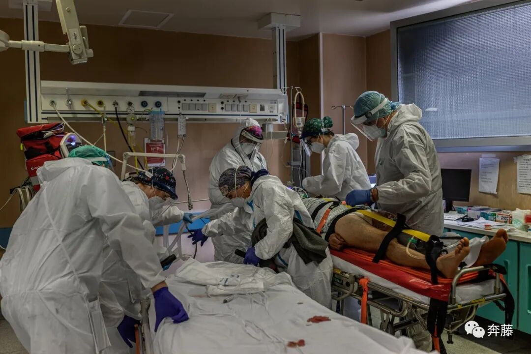 11月6日,意大利,Seriate,贝加莫省的医务人员在照顾一名患有严重呼吸道症状的患者。意大利北部省成为西方世界最致命的病毒爆发地之一。