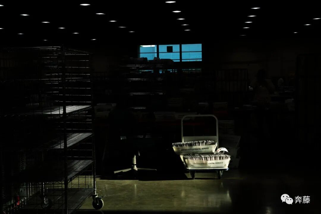 11月3日,加利福尼亚州波莫纳,选举选票正被送去计数。加州人在投票率的历史性飙升中发挥了重要作用,美国投票人数首次超过1.5亿。