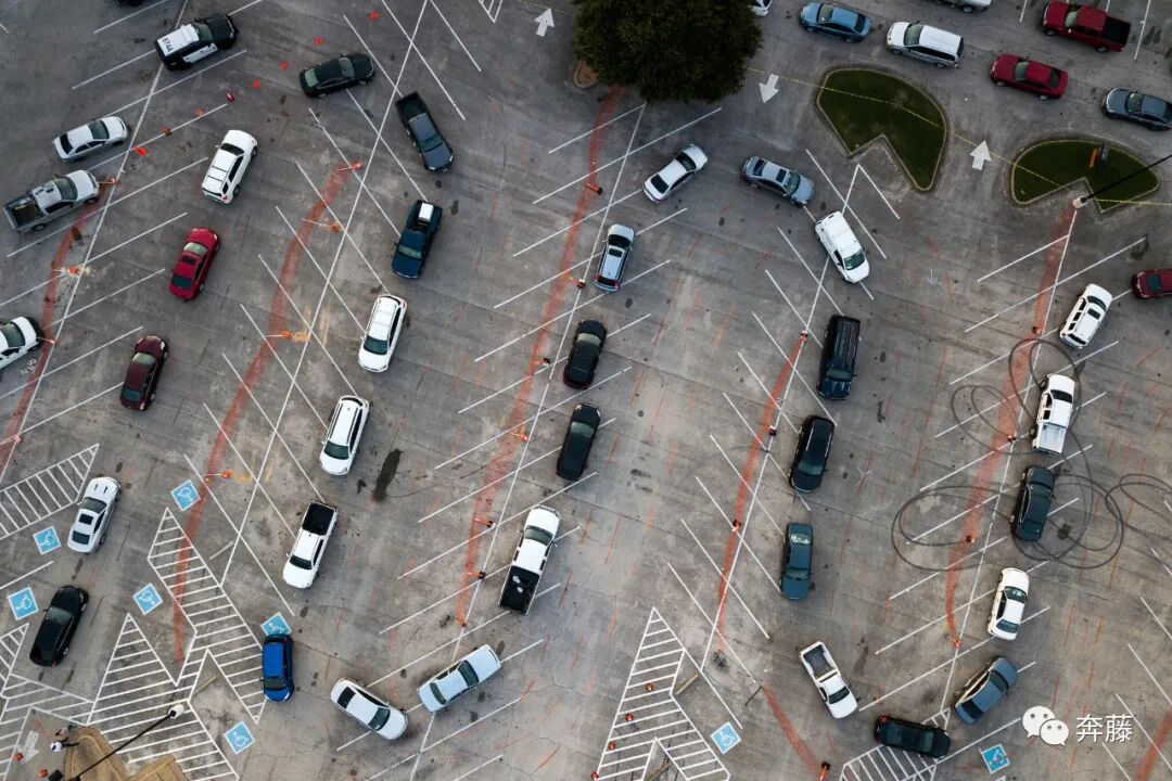 7月2日,得克萨斯州奥斯汀,在该州冠状病毒病例激增期间,车辆在直通测试现场排队。得克萨斯州是最早解除封锁的州之一。