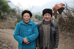 小宝的爷爷和奶奶,他们走下山去拍合影的机会也很少。