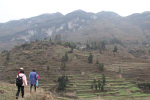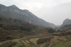 从小红家门口望去,远处重峦叠嶂。这是一个海拔1000到2000米的地区。生存条件恶劣。