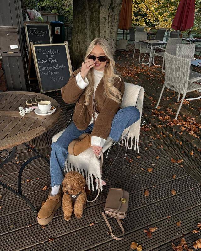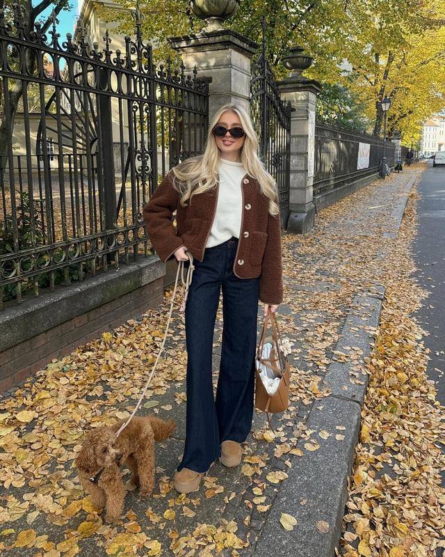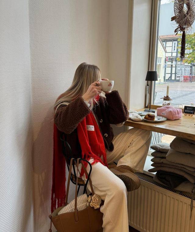 除了长毛绒的皮草外套可以在氛围呈现上发挥自己的作用外,大家也可以像博主一样选择摇粒绒外套,视觉上和常规外套无异,触感上却显得格外暖和。