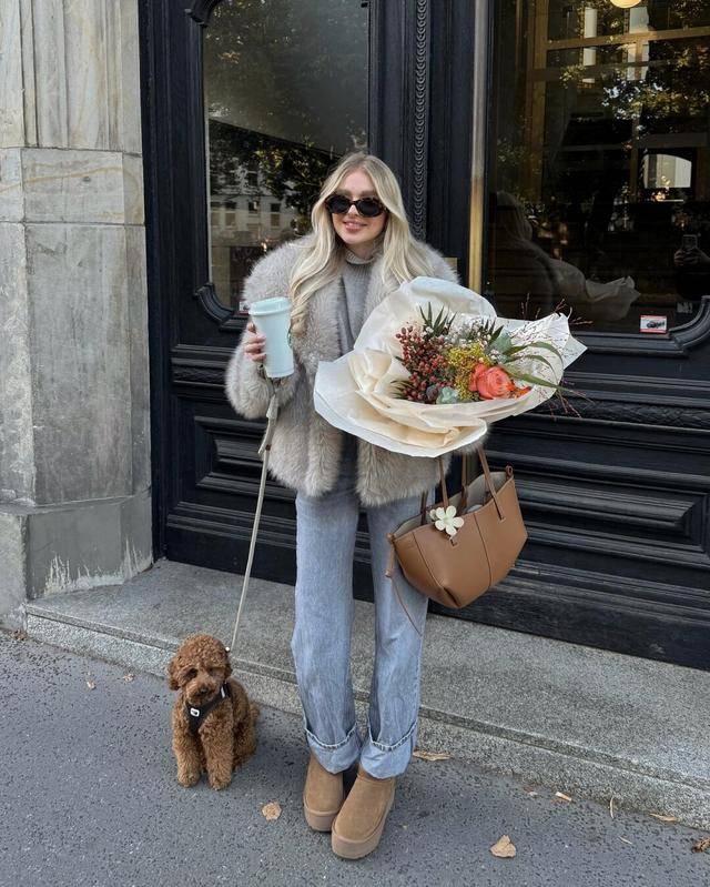 冬天也能甜美出行!毛绒外套+浅色配饰打造甜妹风