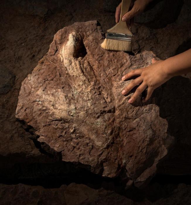 这个标本最初是当地人在修路的时候发现,施工队清理石头时候发现一块巨大的红色砂岩上有一个奇形怪状的印记。当地施工队便派人联系并告诉了钮科程,这个印记看起来像是由一只恐龙或者是某种巨大的三趾动物留下的。